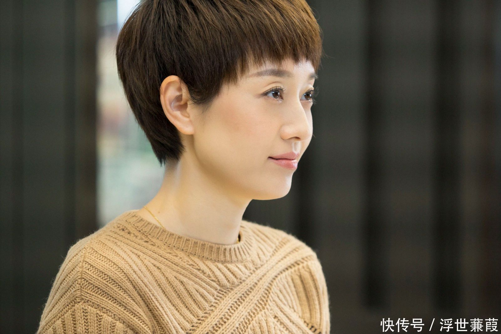 与以前干练短发、温润在意的经典形象造成强横反差,边幅一新。