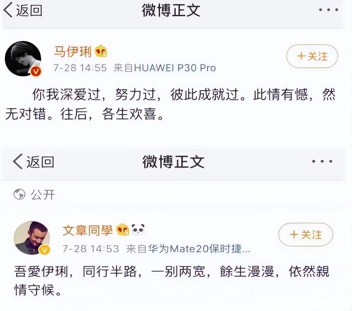 “吾爱伊琍,同业中途,一别两宽。”