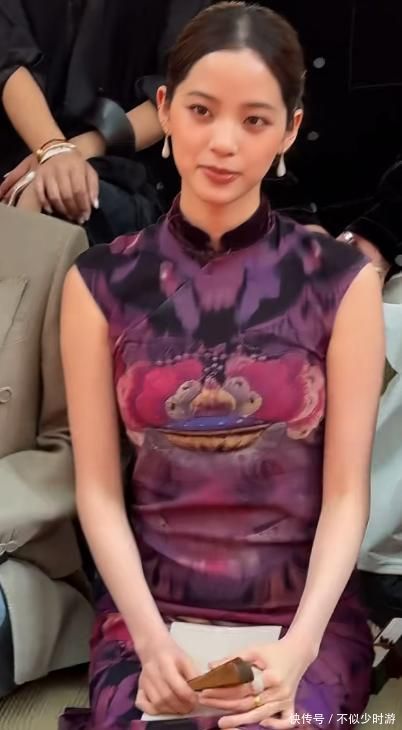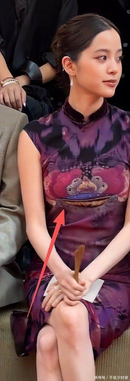 她所选旗袍遴选细小雪纺材质,垂坠感不及且枯竭筋骨相沿,本应展现柔韧张力的东方剪裁,在此面料衬托下显得单薄乏力。
