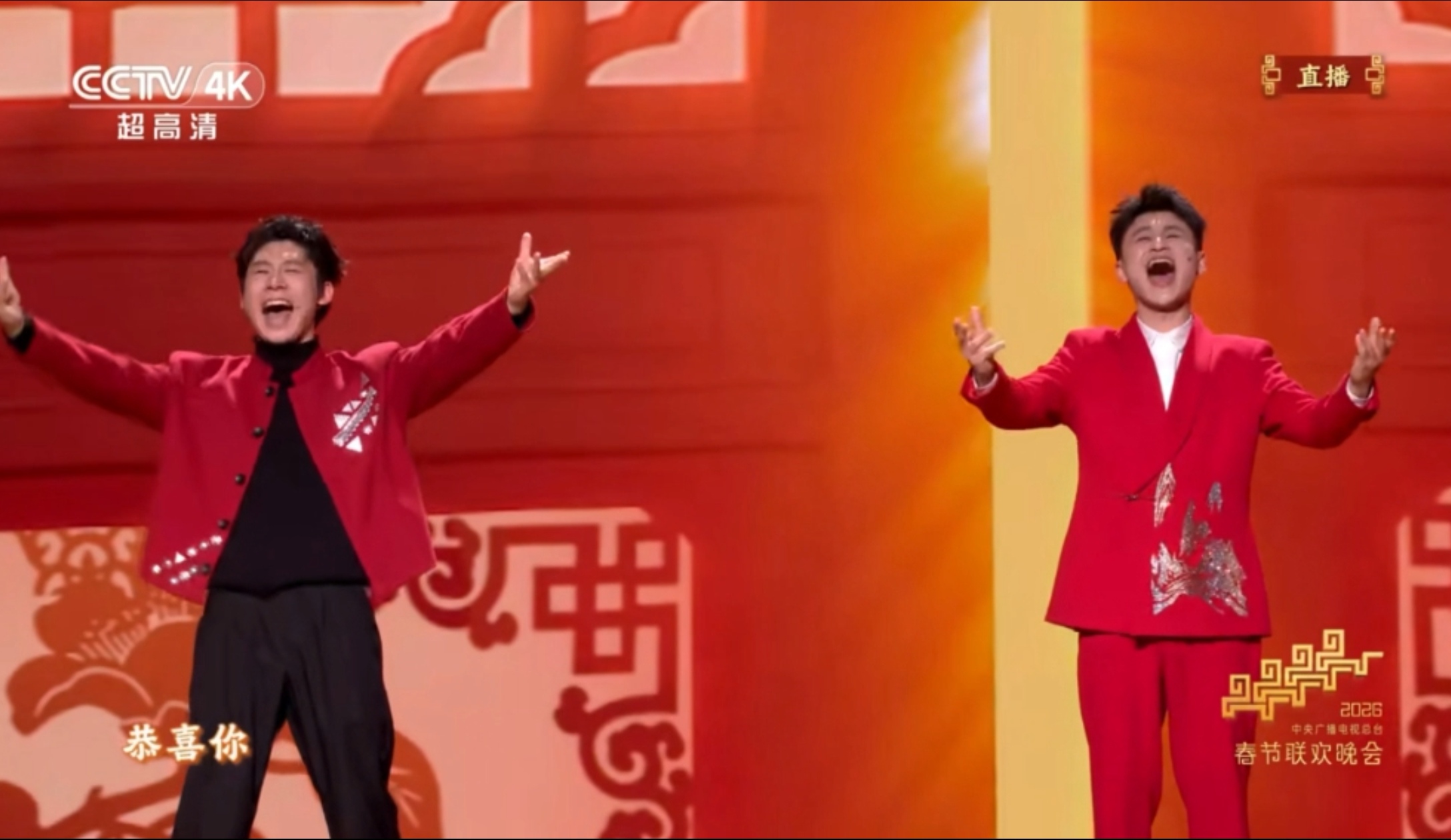 由此,他登上了央视春晚的舞台,与《中国唱将》的伯仲姐妹们沿途,演唱了最喜庆的歌曲《恭喜恭喜》。